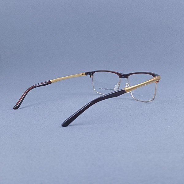 The Porsche Design 88057 C3 is a refined premium eyeglass crafted for modern professionals who value precision, comfort, and timeless design. The elegant brown front paired with signature gold metal temples reflects Porsche Design’s minimalist luxury. Its rectangular silhouette offers a sharp, confident look suitable for office wear and everyday premium use.