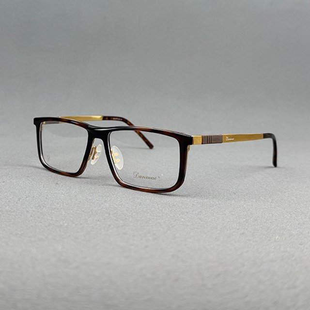 A premium Danmac eyeglass featuring a stylish brown tortoise front combined with elegant gold temples. This classic dual-tone design offers a refined and sophisticated look, perfect for both professional and everyday wear. Built with high-quality metal and acetate materials, it ensures durability, flexibility, and all-day comfort.