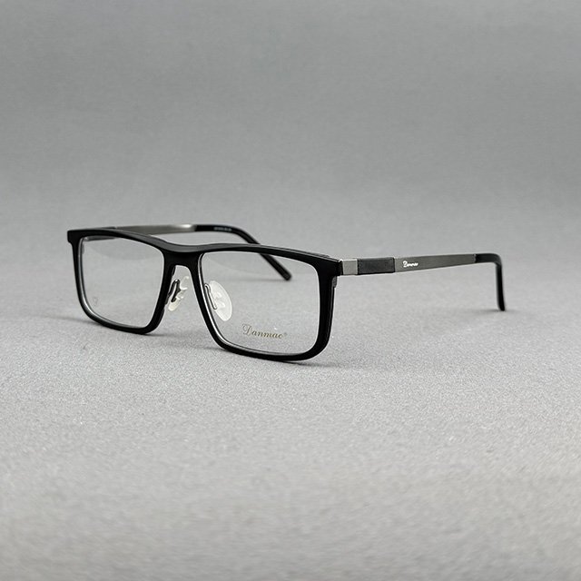 A premium Danmac eyeglass featuring a sleek matte black acetate front paired with modern grey temples. This clean dual-tone design offers a sophisticated and minimal look, perfect for both professional and everyday wear. Built with high-quality materials, it ensures durability, flexibility, and long-lasting comfort.