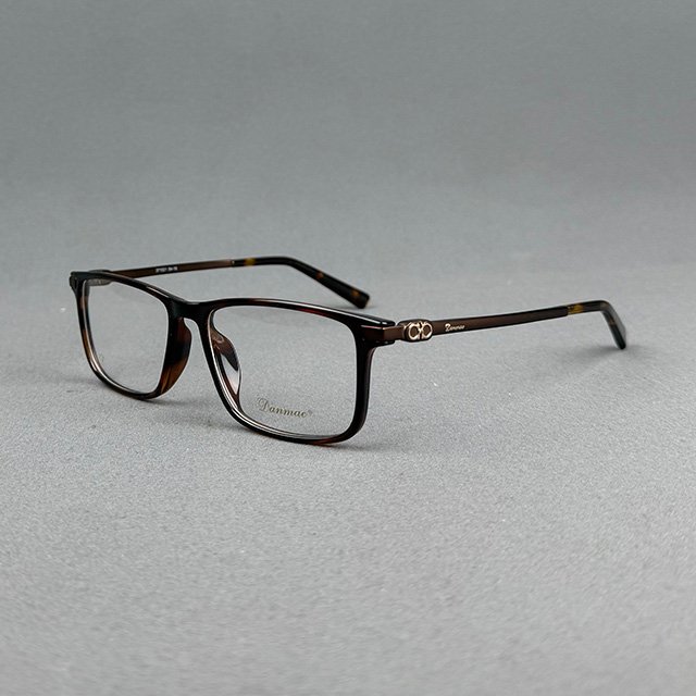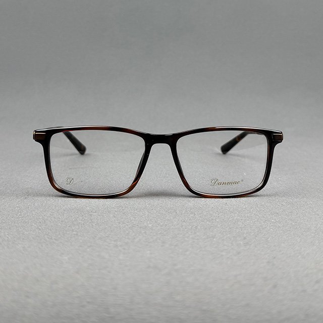 A premium Danmac eyeglass featuring a classic brown tortoise acetate front paired with matching brown temples for a clean and sophisticated look. The combination of metal and acetate ensures durability, flexibility, and long-lasting comfort. Its rectangular design makes it a perfect choice for both professional and everyday use.