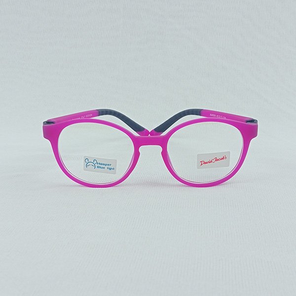 David Jacobs XW009 is a colorful, playful, and comfortable kids eyeglass frame designed for young children. The bright pink front combined with dark navy temples creates a fun yet balanced look that kids love. Crafted from high-quality TR90 material, this frame is lightweight, flexible, and durable—perfect for everyday school and home use.