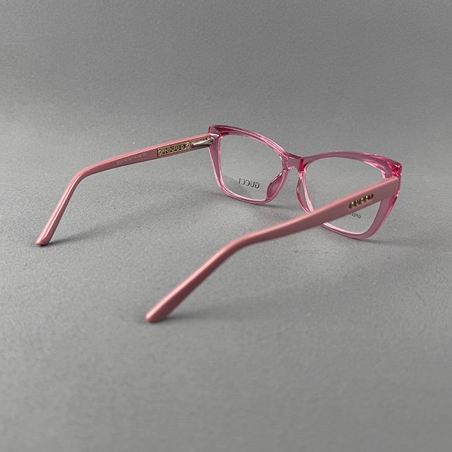 Special Feature: Soft pink finish, smooth acetate texture, bold cat-eye design