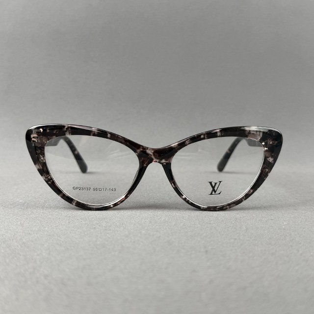 A fashionable premium full-frame eyeglass designed with a unique grey tortoise pattern, offering a modern twist on a classic style. The elegant cat-eye shape enhances facial features and adds a bold, feminine touch. Crafted from high-quality acetate, this frame ensures durability, flexibility, and lightweight comfort for all-day wear.
