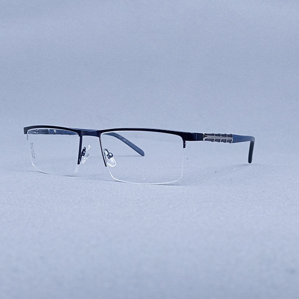 Frame Style: Matte Dark Blue Semi-Rimless Rectangle