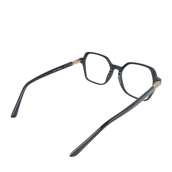 Frame Style: Modern geometric design with luxurious gold temple accents