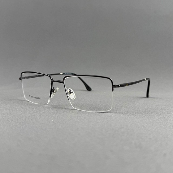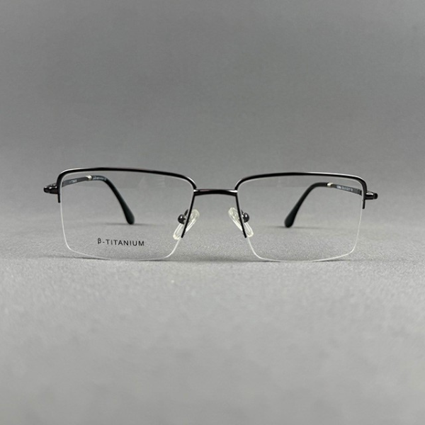 A premium half-frame eyeglass crafted from high-quality B-Titanium, featuring a sleek gun metal finish for a modern and professional look. The lightweight yet strong titanium construction ensures durability and maximum comfort for long hours of wear. Its minimalist half-frame design provides a clean and sophisticated appearance, perfect for office and everyday use.