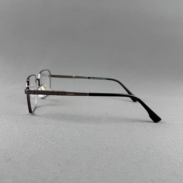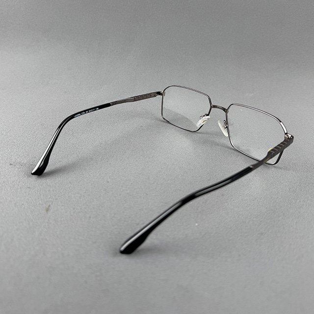 A premium full-frame eyeglass crafted from high-quality titanium, featuring a sleek gunmetal finish for a modern and professional look. The strong yet ultra-lightweight titanium construction ensures durability and long-lasting comfort. Its clean rectangular design offers a sharp and sophisticated appearance, perfect for office and everyday wear.