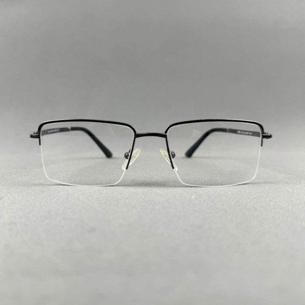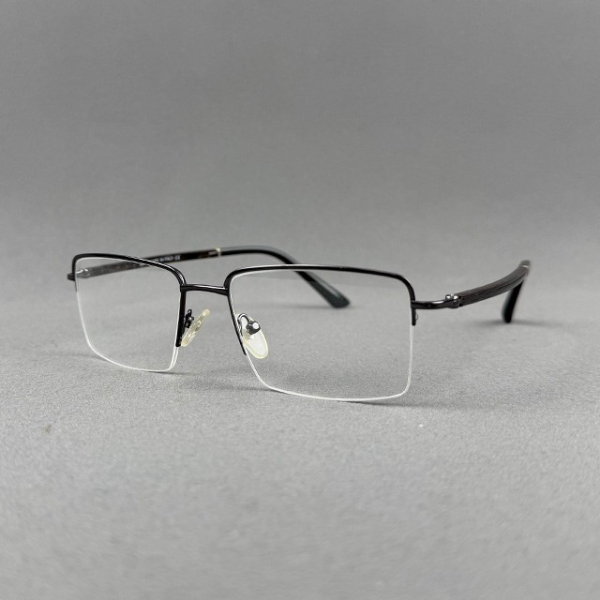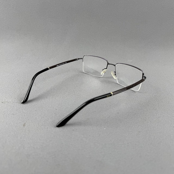 A premium half-frame eyeglass crafted from high-quality metal, featuring a sleek gunmetal finish for a modern and professional appearance. The lightweight yet durable construction ensures long-lasting comfort, making it ideal for everyday wear. Its minimalist half-frame design provides a clean and sophisticated look, perfect for office and formal use.