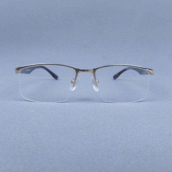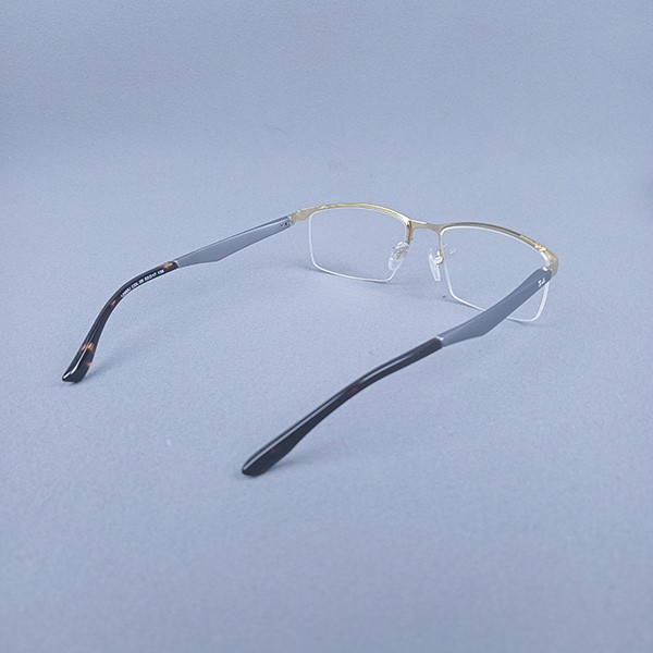 A premium half-rim metal eyeglass featuring a refined gold front paired with uniquely designed grey temples and tortoise temple tips. This stylish combination delivers a high-end look with excellent comfort and durability. Perfect for professionals seeking a modern, lightweight frame with a premium finish.