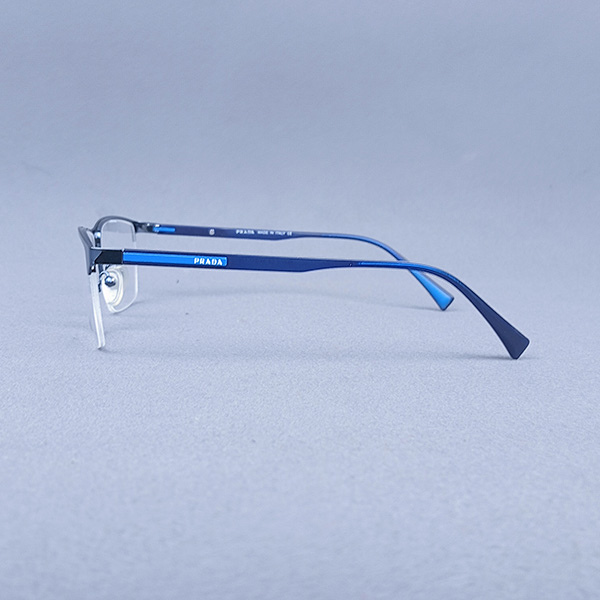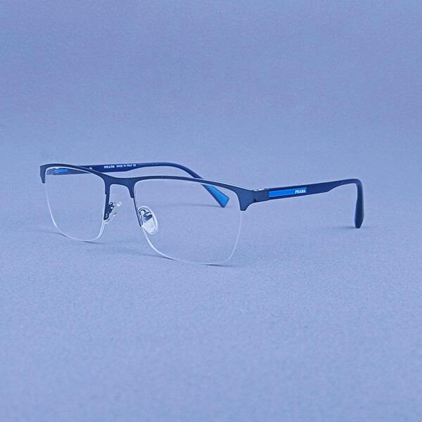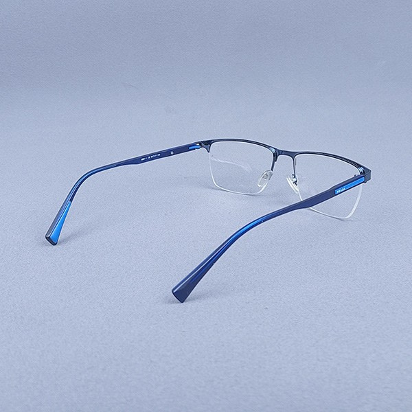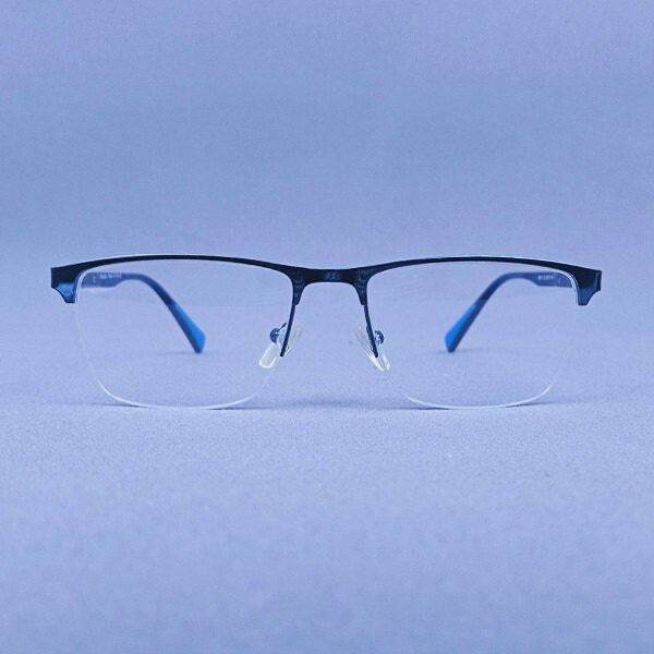 A sleek and lightweight premium half-rim optical frame designed for professionals who prefer a clean and modern look. The navy-blue finish with dual-tone temples adds an elegant touch, making it perfect for daily wear.