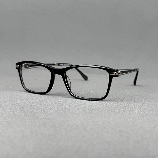 This premium full-frame eyeglass features a classic black rectangular front paired with sleek metal temples, offering a refined and timeless look. The solid acetate front ensures durability, while the metal temples provide strength and comfort for long-hour wear. Designed for everyday elegance, this frame is ideal for office use, formal settings, and premium daily styling.