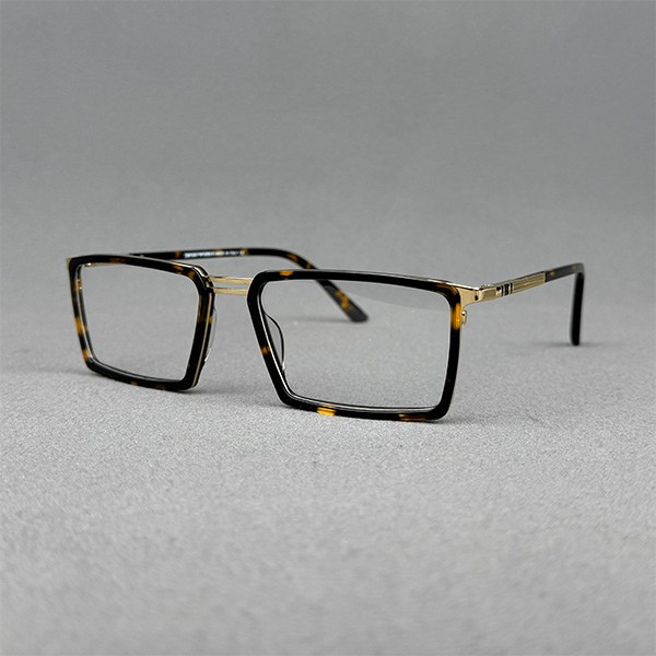 This premium full-frame eyeglass features a stylish tortoise-patterned rectangular front paired with elegant gold-tone metal detailing on the bridge and temples, creating a refined and luxurious appearance. The high-quality acetate front ensures durability and long-term shape retention, while the metal components provide strength, balance, and all-day comfort. A perfect choice for office wear, formal occasions, and premium daily styling.