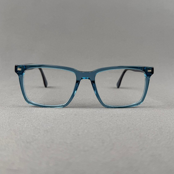 A stylish premium full-frame eyeglass featuring a unique transparent blue finish that adds a modern and refreshing look. Made from high-quality acetate, this frame offers durability along with lightweight comfort for everyday use. The rectangular shape ensures a smart and professional appearance, making it perfect for both office and casual wear.